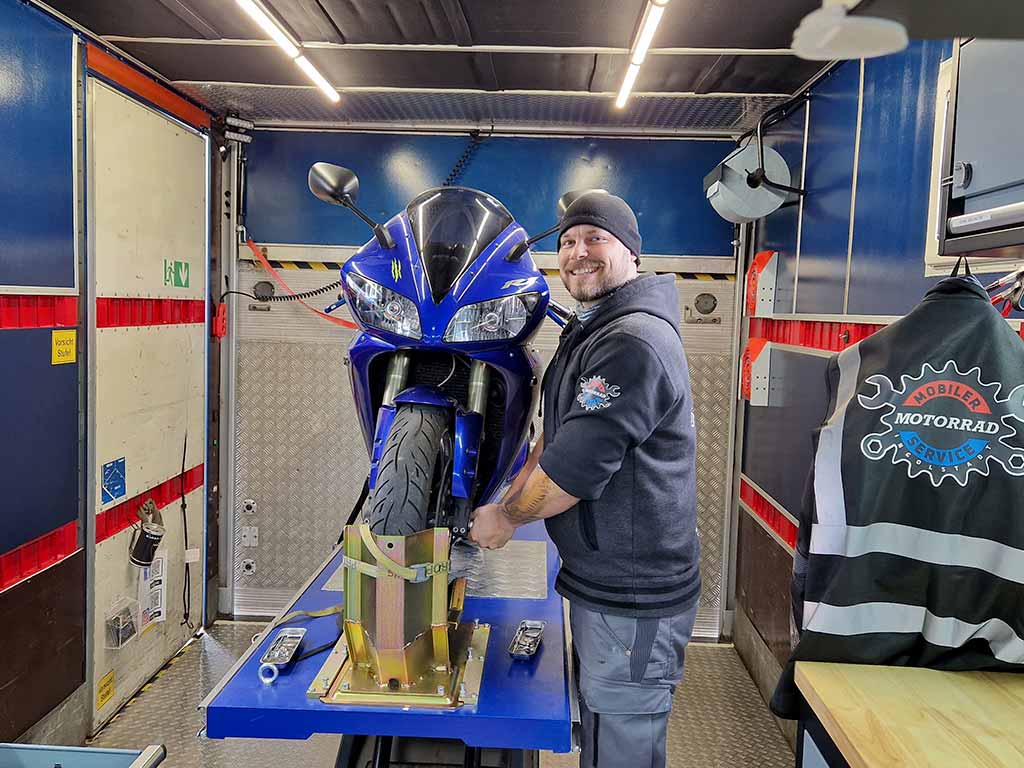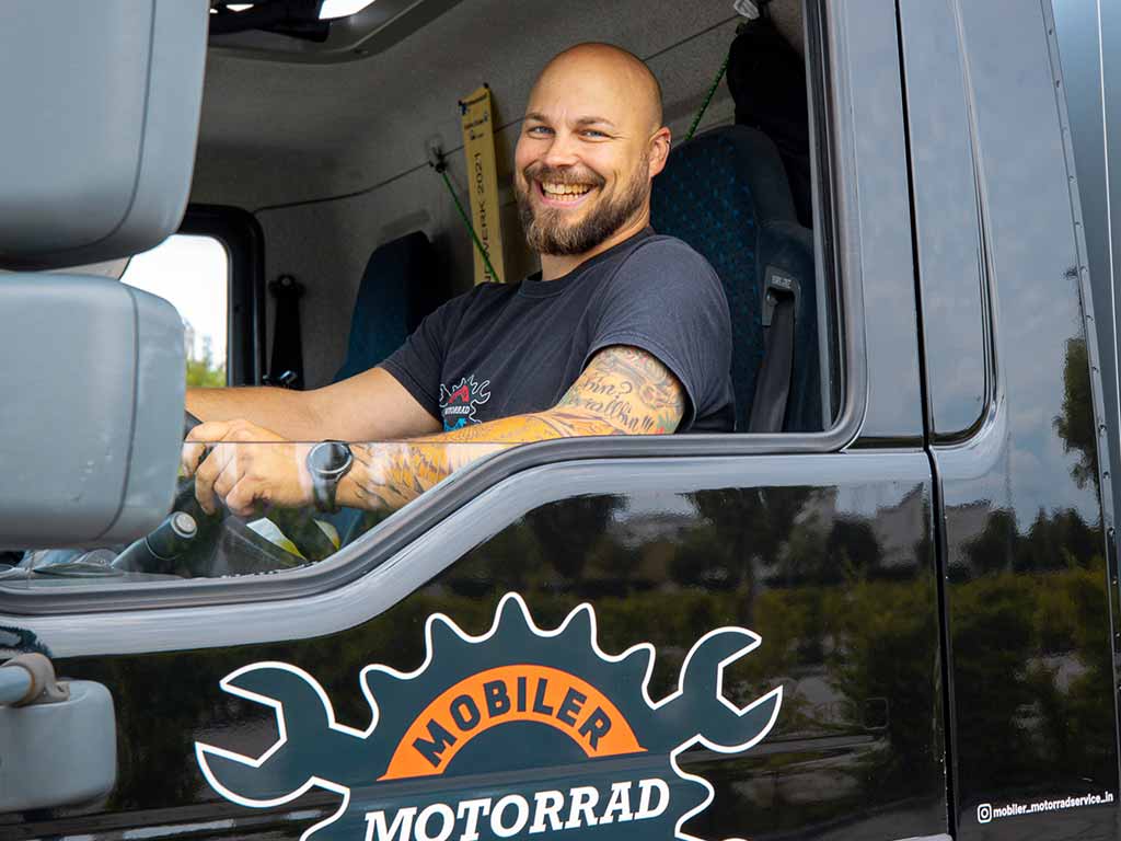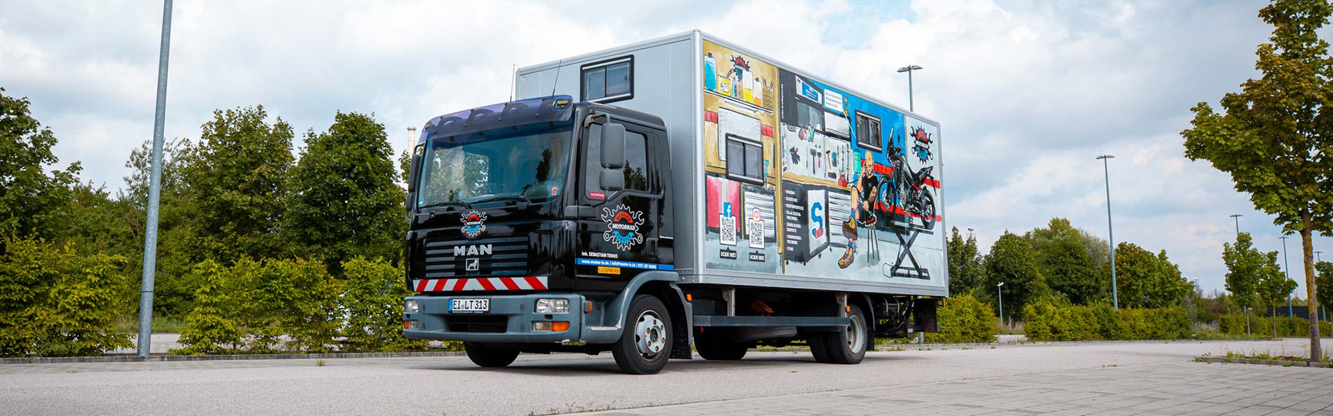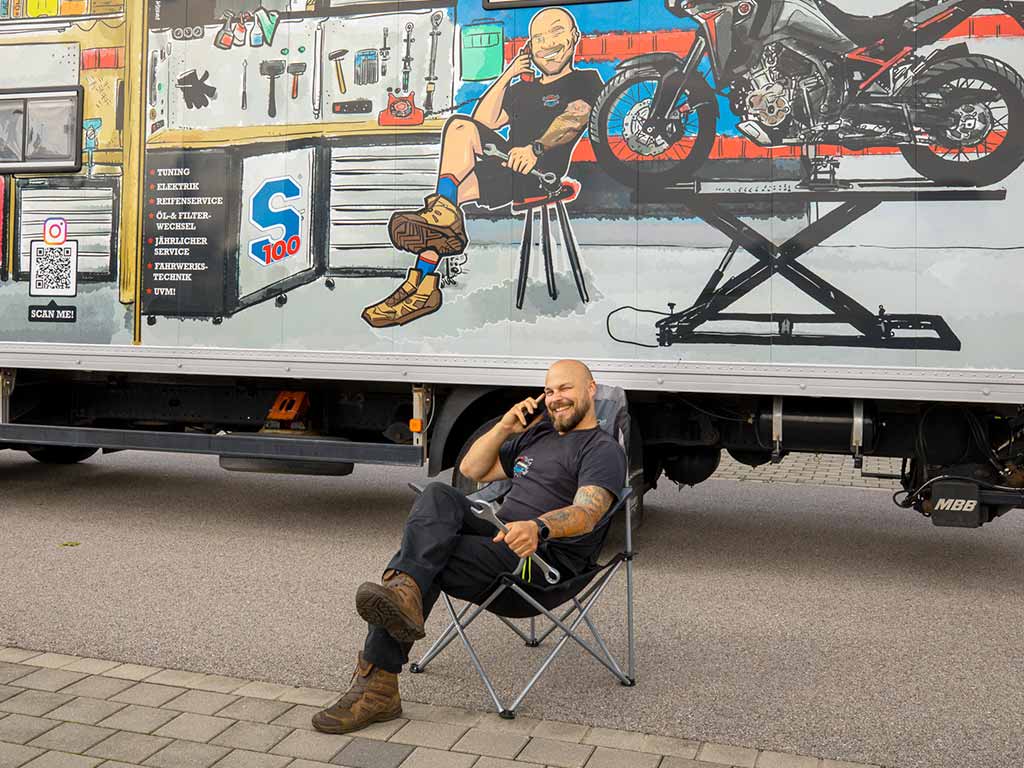 Was bringt einen dazu, eine Motorradwerkstatt in einen LKW einzubauen und damit zum Kunden zu fahren?