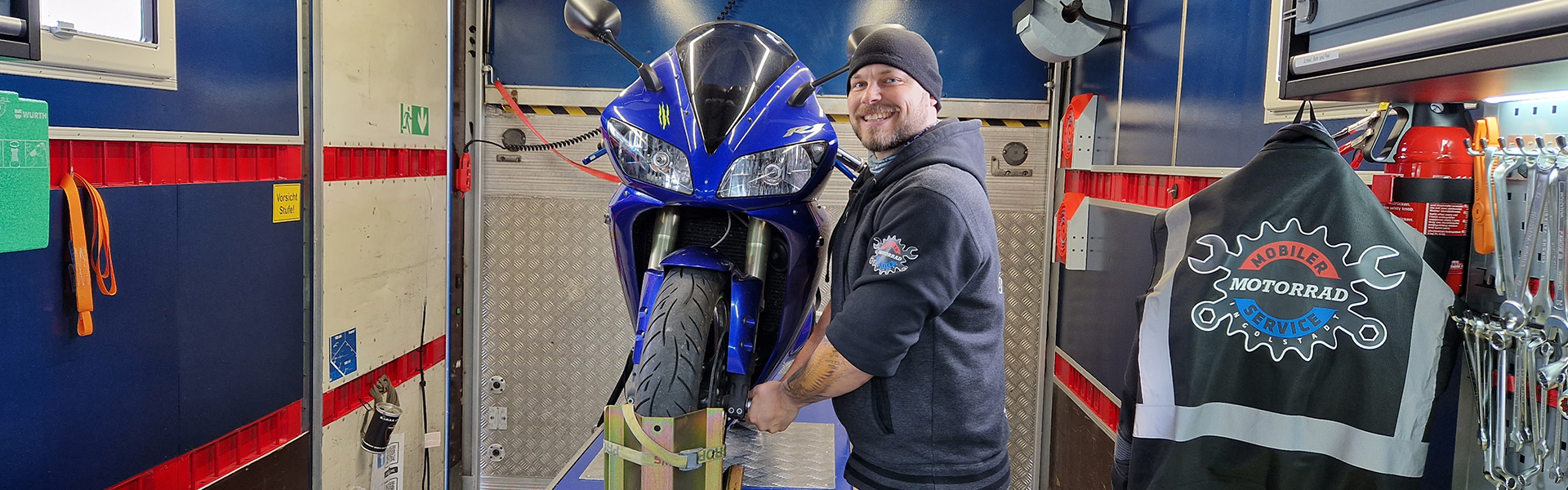 - Wenn eine Reparatur nicht vor Ort zu erledigen ist weil sich intraoperativ etwas Unvorhergesehenes ergibt, nehme ich dein Motorrad nach Rücksprache mit in meine stationäre Werkstatt und arbeite dort weiter (z.B. wenn Teilebestellungen zu erledigen sind)